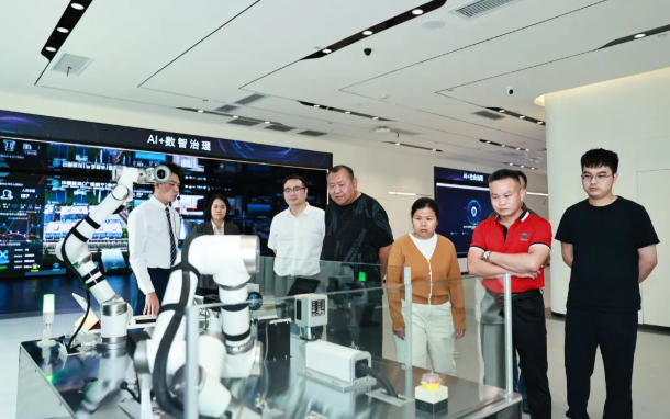 活动伊始,在中国移动南宁江南分公司总经理黄赢的陪同下,南宁城和医院院长勾建平、党支部书记苏文宏一行参观了中国移动广西公司数智化体验中心。在数字信息中心讲解员的引导下,大家近距离体验了5G、人工智能与大数据技术在智慧城市、智慧医疗等领域的创新成果,深刻感受了“AI+数智治理”为千行百业带来的变革性力量。
