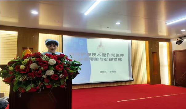随后,骨科护士长李芳莲以《临床护理技术操作常见并发症的预防与处理措施》为题,针对临床护理操作中易出现的并发症,系统讲解了预防要点、应急处理流程及护理干预技巧,为护理人员规范操作、规避风险提供了清晰指引。